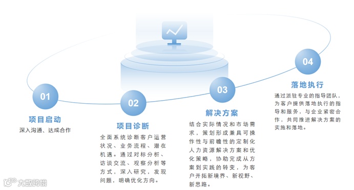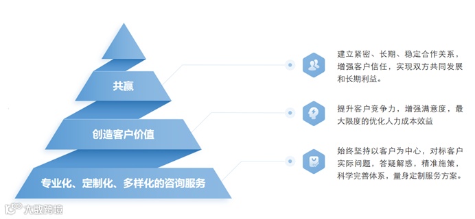 我们始终坚守“做精咨询、做优服务”的核心理念,致力于精准聚焦并全面满足客户在不同发展阶段的多元化、差异化需求。通过深入开展对标分析、细致调研、访谈交流、派驻指导等精细化方法,全面系统诊断,发现问题,明确优化方向,形成专业化、定制化、差异化的“项目启动→项目诊断→解决方案→落地执行”全流程咨询服务体系。我们策划设计全流程、全方位、高质量、高标准的“两全两高”的定制化人力资源解决方案和优化策略,做到“一把钥匙开一把锁”,达到与客户“同心同向同行”,成功为27家客户提供了十四五人才规划、薪酬体系搭建、绩效考核体系搭建等咨询服务项目,助力了人力资源效能显著提升,加速了人力资源管理体系的现代化进程,实现更高效、更精准管理与运营。