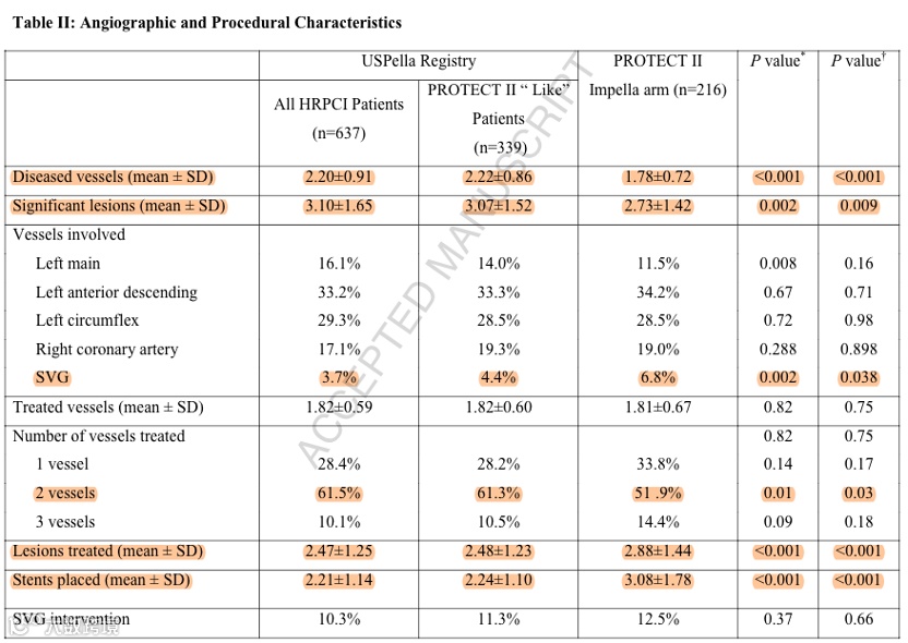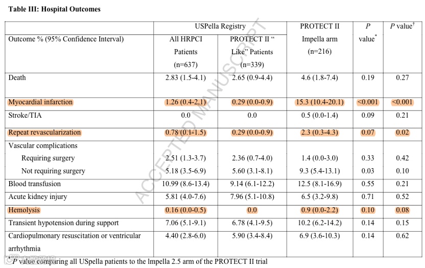 USpella研究是一项观察性多中心回顾性注册研究,共登记了637例患者,其中339名患者符合PROTECT⁃II试验的入组标准,且与PROTECT⁃II中接受Impella的治疗的216例患者进行了比较。