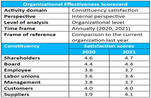 当然,这是一个简化的示例。还有更多衡量满意度的方法,例如,员工的离职率,工会使挫败感公开化的程度,组织达到目标的程度,与行业相比的位置以及保持竞争优势的效率。但是,该示例显示了衡量组织有效性的力量,以及如何使用内部基准测试来提高组织的效率。