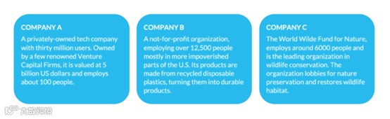 上图显示了三个组织。你认为哪个组织更有效?他们每个人都对其股东,用户,工人或环境产生了明显的积极影响。这使他们每个人都有效,以不同的方式。