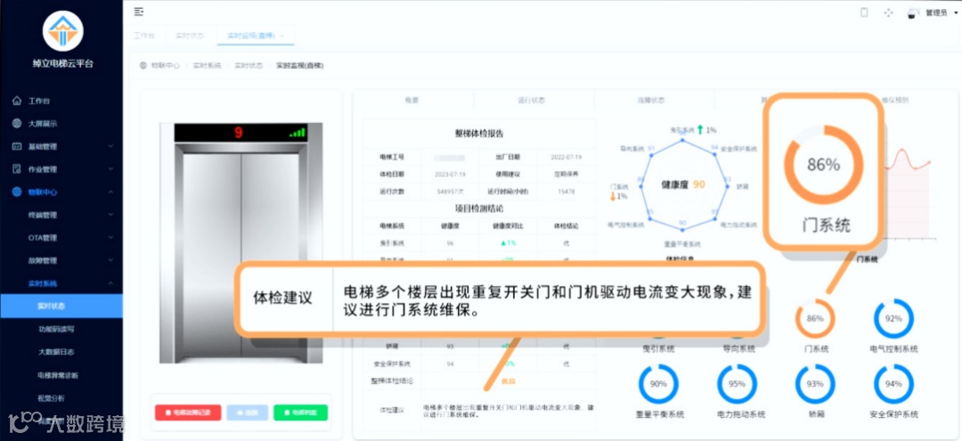 此外,自主研发的电梯遥监云平台还进行了功能创新,电梯预测性维保取得新突破。实时监控电梯运行状态,通过算法和大数据建模,智能判断故障情况并作出预置方案,使电梯维保从传统的故障维修和计划性维护,跨越至前瞻式、预测式维保升级,推动电梯安全风险从被动应对向主动防控的转变。