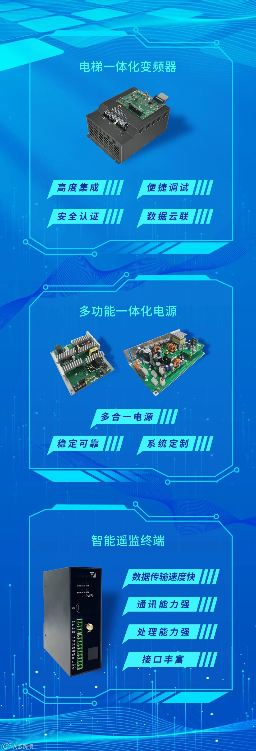 绰立科技不断探索前沿技术及优化应用,以技术迭代,领跑行业。多年来,打造了以电梯一体化控制器为核心的电梯控制产品体系,并向工业物联网以及智能楼宇等多元化应用场景延伸,致力于为客户提供更具价值的综合解决方案。其中新一代智能电梯一体化变频器,多功能一体化电源,智能遥监终端等产品,为电梯的安全、高效、可靠运行提供多项技术支持: