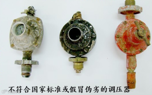 典型特征:产品颜色非桔红色;产品身上或说明书上标明的出口压力大于5.0kpa;出口连接非双螺纹;调压器配有可调压手轮