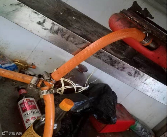 典型特征:连接软管穿过墙体、门窗、顶棚和地面,没有采取安全保护(比如安装套管等)措施
