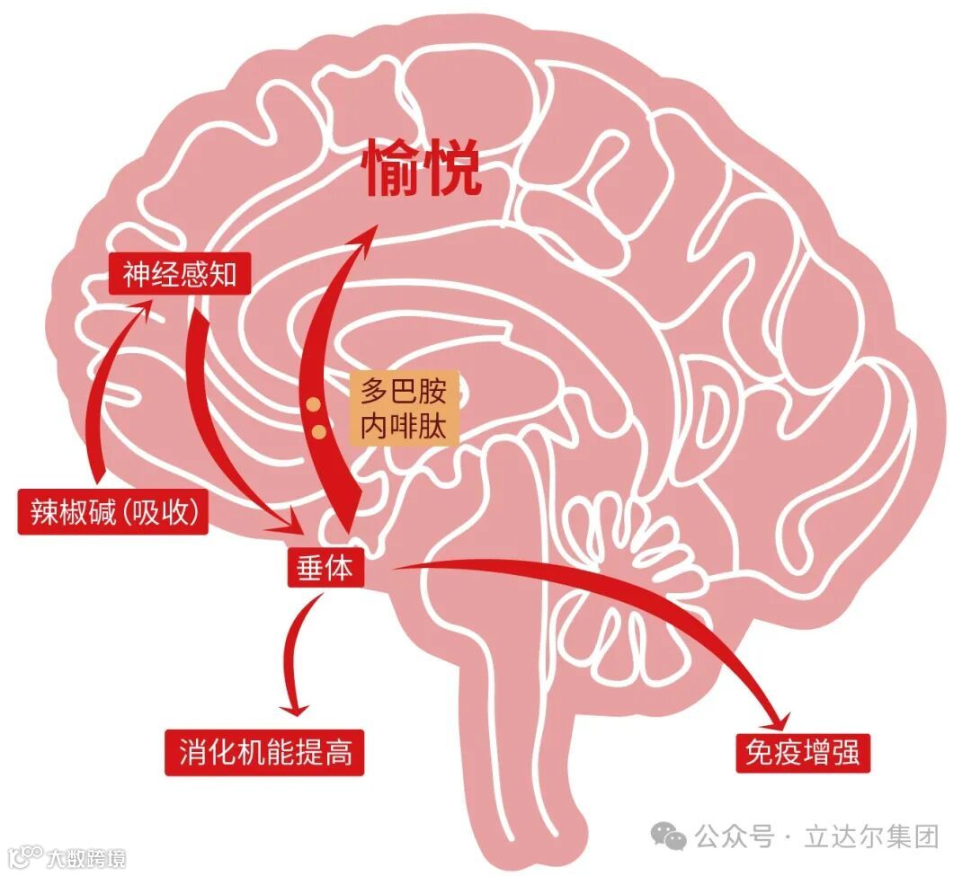 辣椒碱的独特性质让其在养殖行业中,具有非常积极的作用。被动物采食后,与消化道内化学感受器结合,激活神经产生多巴胺、内啡肽等提高动物愉悦感的神经递质;同时刺激唾液、消化液及消化酶的分泌,促进胃肠蠕动等,达到增食促消化、提高免疫能力、增强动物愉悦感等功效,从而提高动物生产性能和养殖效益。