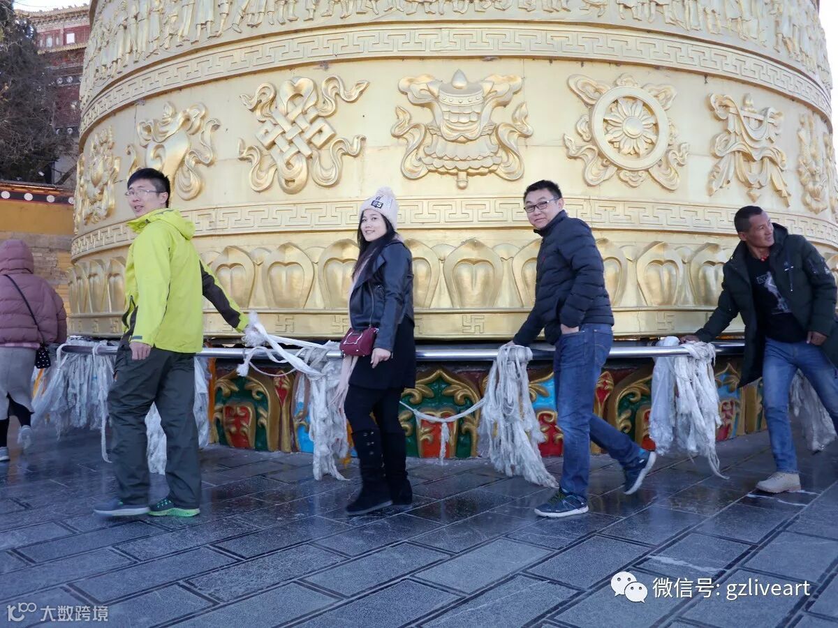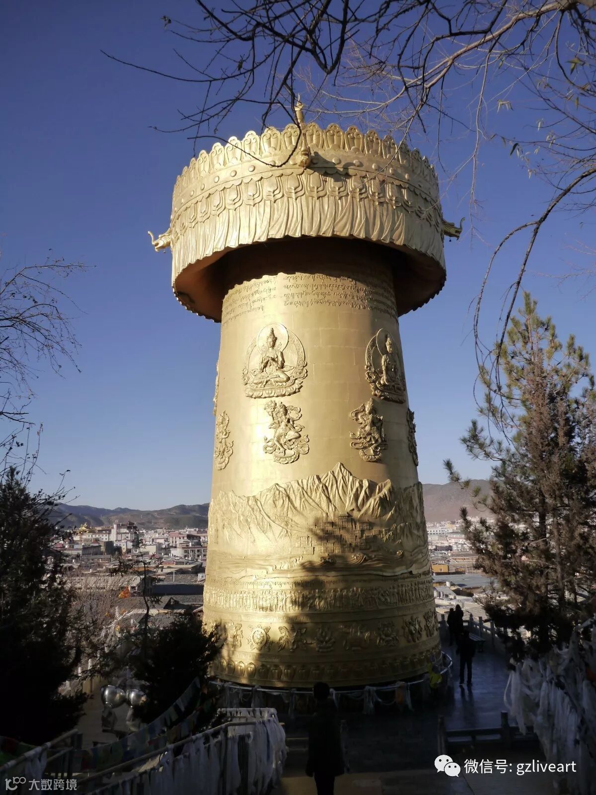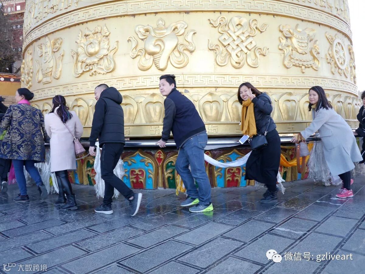 巨型转经筒,世界最大转经筒,高达21米、总重60吨,馏金纯铜制作,筒内藏有经咒、六字真言124万条和多种佛宝共16吨,经筒有一圈扶手,可由众人齐力转动,转满三周,寓意消灾祈福,吉祥如意!广州立雅的小伙伴们,齐齐出力转金桶咯~