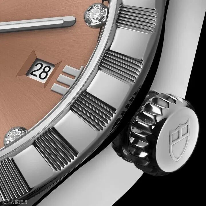 棒形指针,覆以A级瑞士Super-LumiNova夜光涂层,搭配罗马数字时标或镶钻时标,在保证腕表易读性的同时,亦不失精致典范。