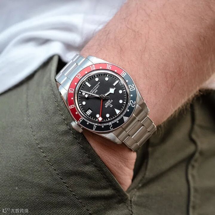 整体造型与潜水表圈相似,但在表圈刻度上调整为24小时,而且多出了一根第二时区指针。