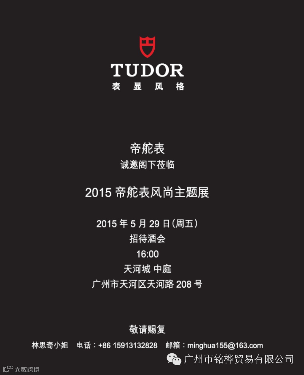 现在,我们诚意邀请尊敬的您参加我们设于广州天河城的帝舵表风尚主题展,天河城见!