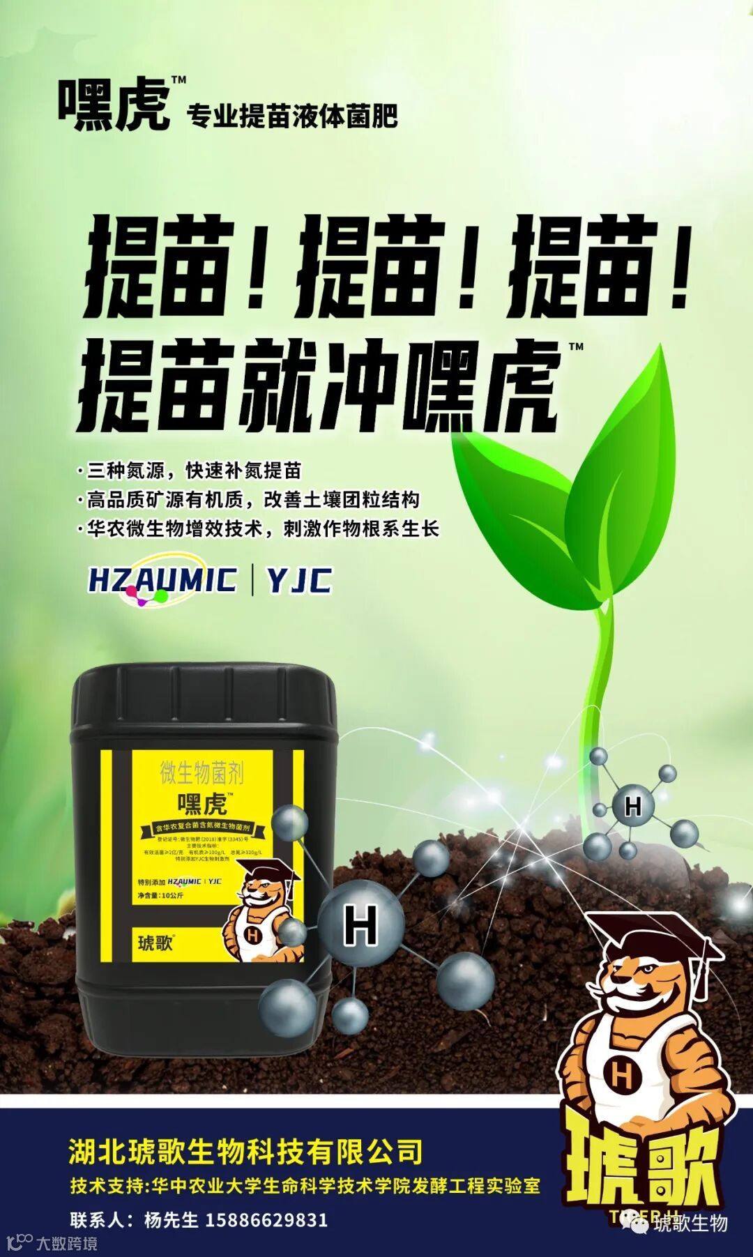 琥歌TM研发团队-华中农业大学生科院发酵工程实验室 ,经过3年配发研发,2年田间验证,研发出解决作物苗期生长的“黑科技”配方嘿虎TM,能够帮助作物快速提苗。