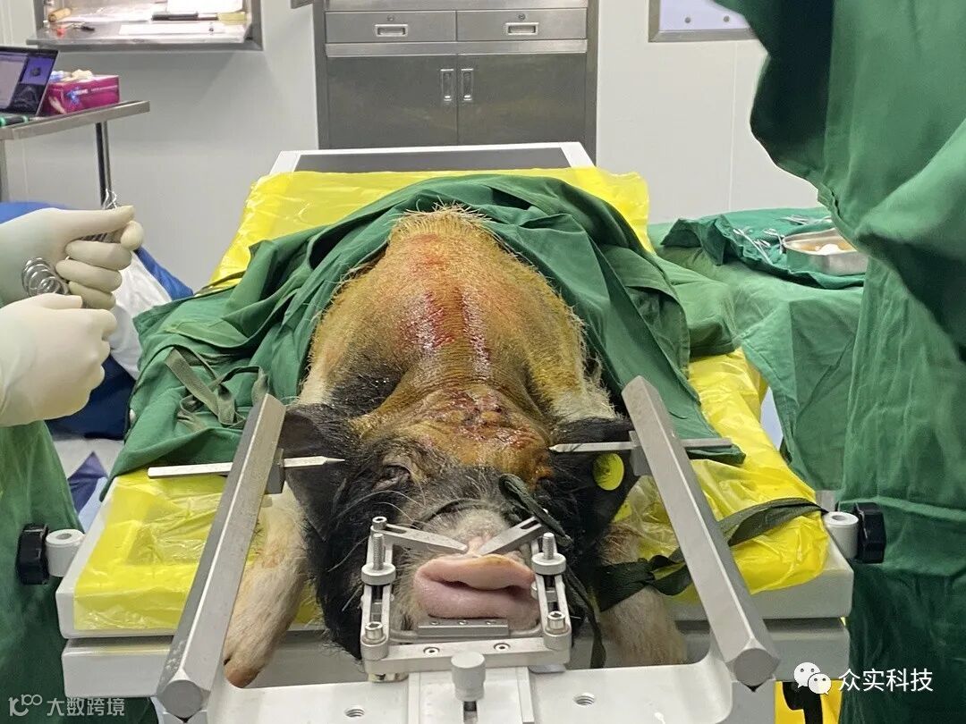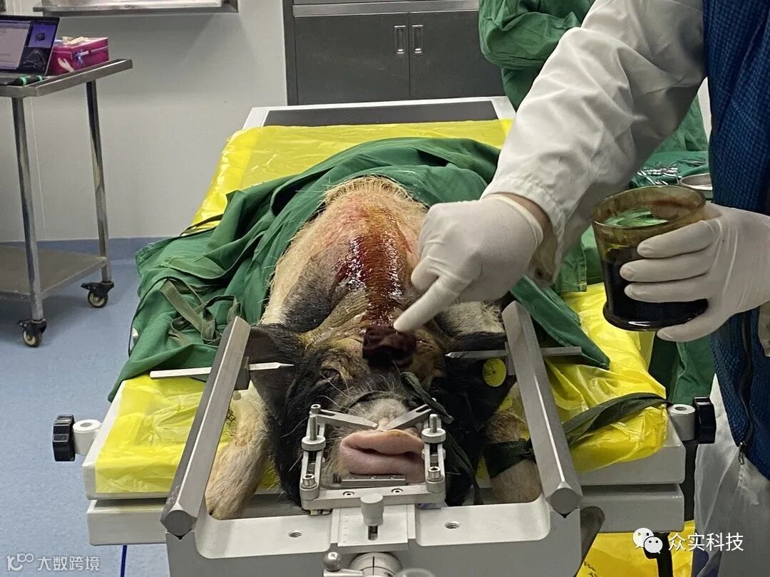 1)用剃须刀或手术弯剪剔除动物头部毛发,用碘伏和酒精棉球消毒皮肤;