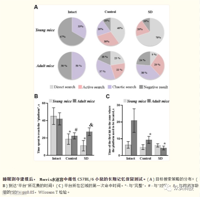 在Morris水迷宫(“对照”)中训练的幼鼠主要选择主动(30%)和直接(40%)搜索策略,而成年小鼠标本的策略分布均匀。睡眠剥夺导致年轻小鼠记忆痕迹复制率的增加。