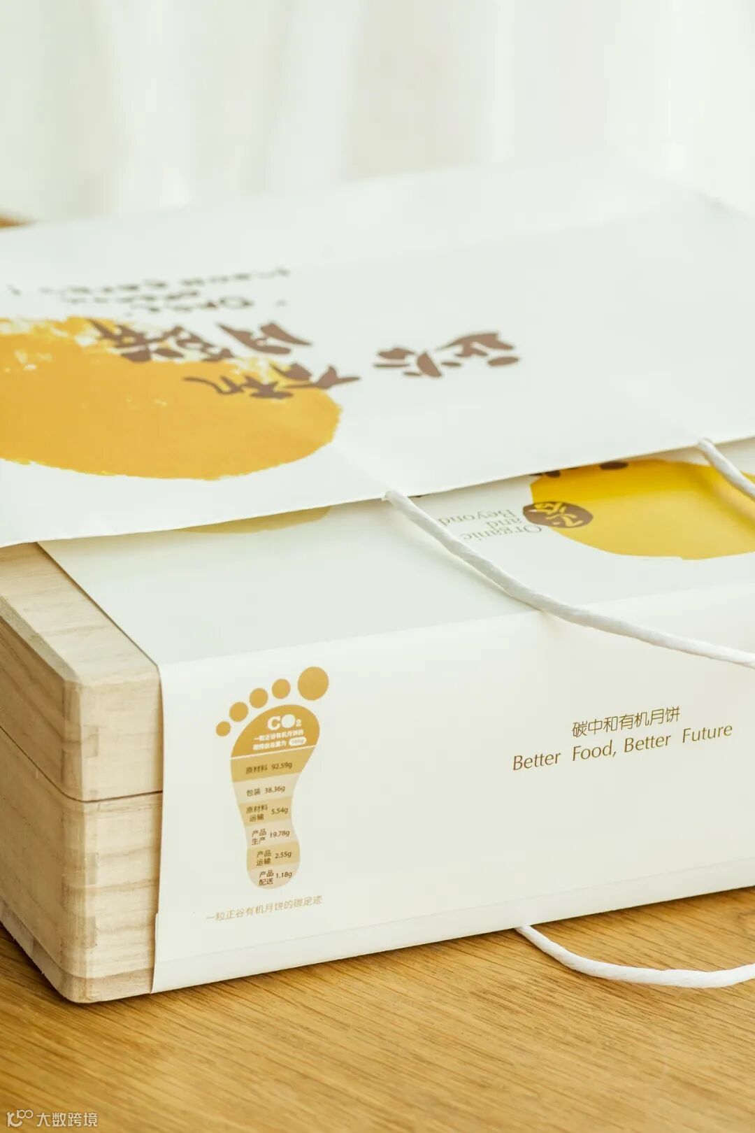 正谷×碳阻迹联名款月饼,一粒月饼重量为60g,它的碳足迹大概160g。其中,原材料、包装和运输是主要的碳排放环节。