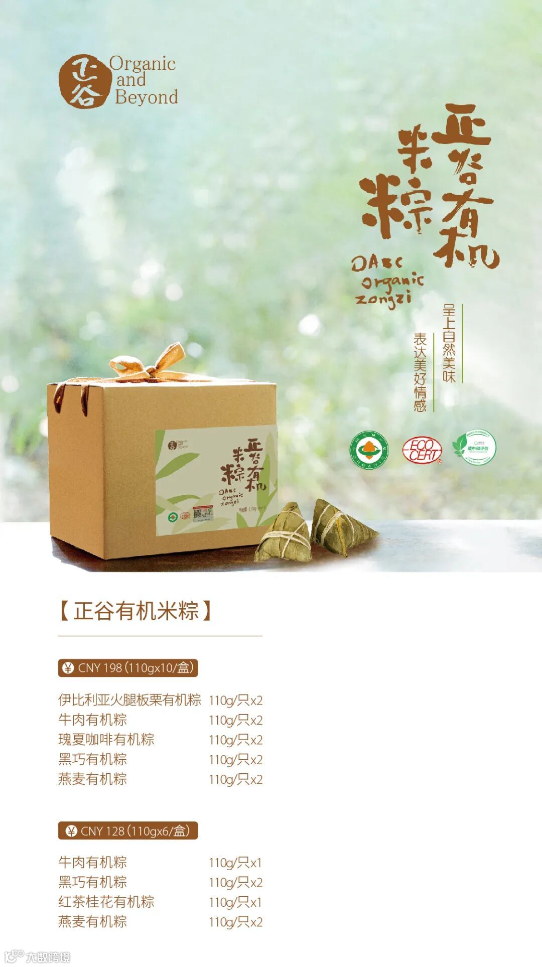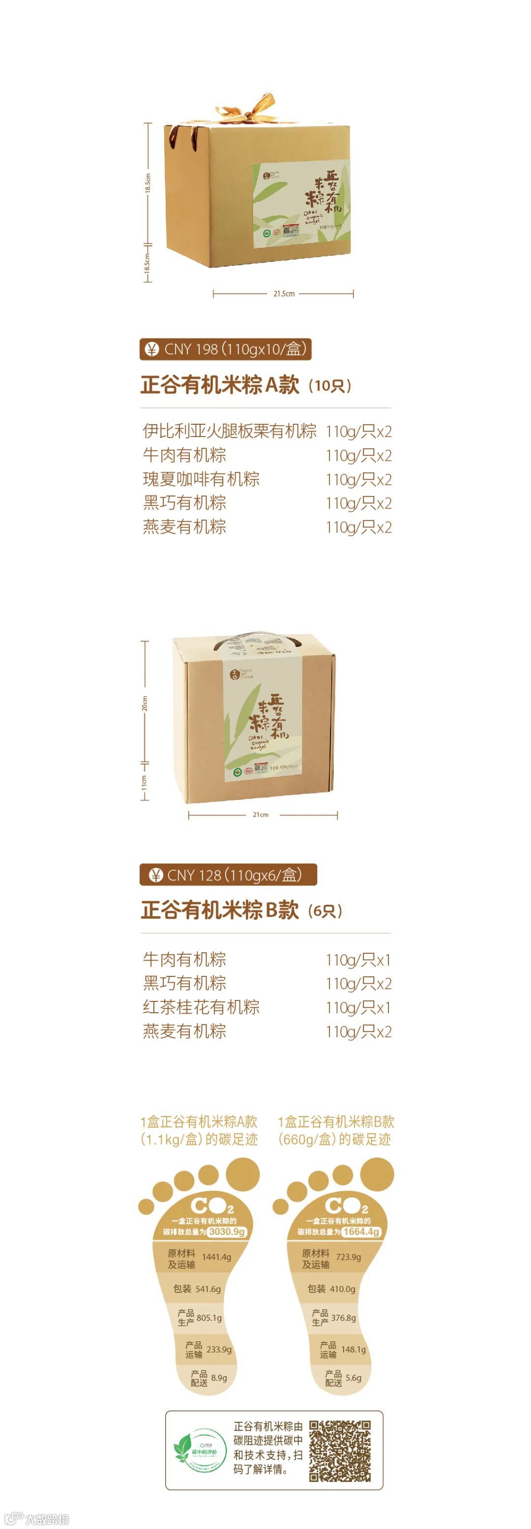 正谷碳中和有机米粽,坚持“有机食材,自然美味”的产品研发原则,选用伊比利亚火腿、秘鲁特立尼达可可制作的巧克力、哥伦比亚瑰夏咖啡等来自正谷标准环球合作农场的优质食材;在种植生产环节,重视生态环境保护;我们在与大家分享美味粽子的同时,期待能够从负责任地生产与消费角度,共同致力于人与自然和谐发展。