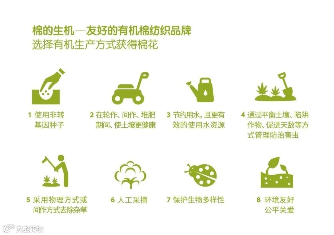 选择有机棉制品,等同于更多的节约用水、更少的环境污染与土壤退化,以及更少的二氧化碳排放。当选择有机生产方式下的食物、纺织品、日用品,即意味着我们为共同家园的现在与未来做出了更好的选择。