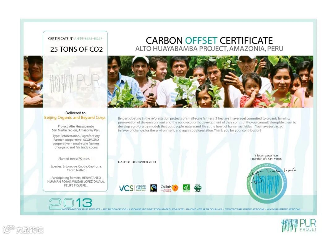 Cavell黑巧克力于2013年获得碳中和认证,由正谷与瑞士巧克力合作伙伴,对可可原料、加工、包装、运输、配送以及消费后废弃包装的产品全生命周期碳排放进行核算,并通过在秘鲁圣马丁和亚马逊的植树造林项目进行抵消。1盒Cavell黑巧克力(90g/盒)的碳排放总量为300.4g,而每盒Cavell黑巧克力的碳汇成本约为0.02元。