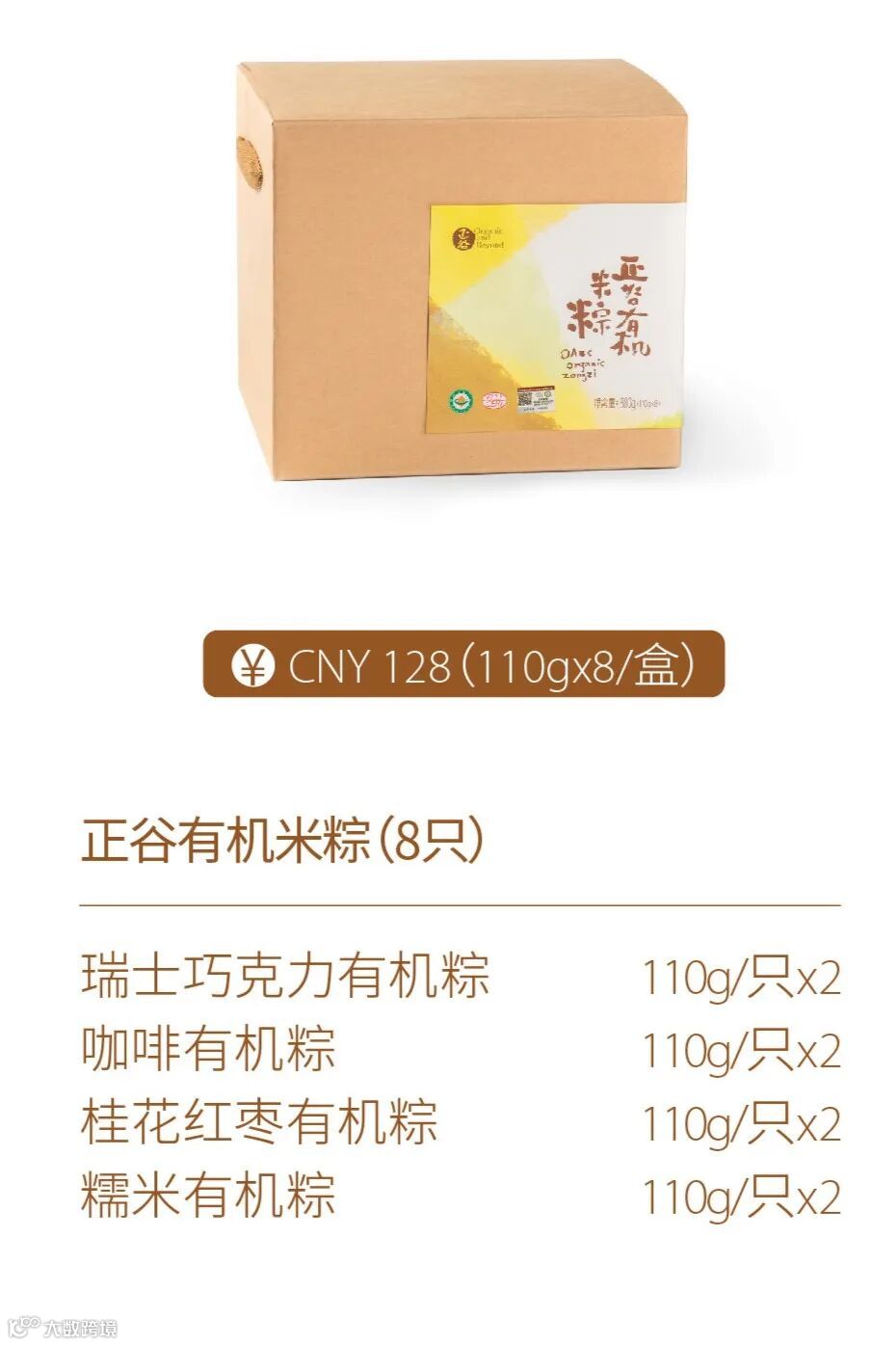 此外,还有牛肉有机粽、咖啡有机粽、燕麦有机粽、桂花红枣有机粽、糯米有机粽等口味,在坚持传统的基础上,结合环球品质食材,赋予节日食品全新的风味。正谷有机米粽在对配料的选择上,同样坚持健康、安心的原则:希腊有机特级初榨橄榄油、巴西有机白砂糖、山东有机酱油......避免过度调味,保留食物本味,以湖北鹤峰县的野生箬叶,包裹着软糯的有机糯米,只为分享自然、美好的味道。