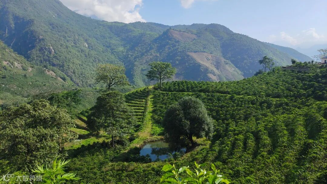 晨雾尚未散尽,第一缕朝曦便穿透高黎贡山的云层,将金光洒向怒江大峡谷畔。瑰夏咖啡园里,晶莹剔透的露珠缀满每一片花草,摇曳闪动。咖啡树影婆娑间,鸡群徜徉于草丛中追捕着蹦跳的虫儿,啼鸣与扑翅声此起彼伏。咖啡花丛里,蜜蜂轻轻作舞。不远处,花蜘蛛悬在蛛网中央,八条细腿紧绷如弦,等待着被晨光惊扰的飞虫自投罗网。两颗高大的木棉树上不时传来鸟鸣声,婉转、清脆,让人心情也不由得荡漾起来。循声望去,北侧的三叠水瀑布倾流直下,宛若天河,奔腾不息。对岸山巅的缭绕云雾,如轻纱般在黛色峰峦间流动,若隐若现,神秘且迷人。
