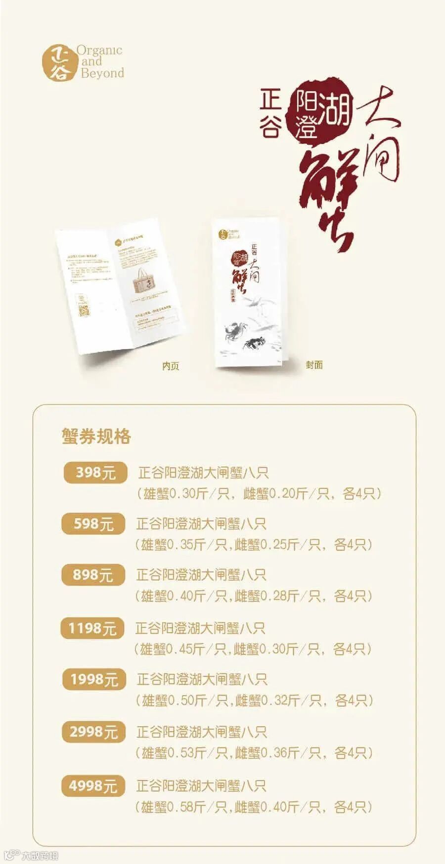 正谷阳澄湖大闸蟹,9月25日正式开湖,提前三天预约,最早9月28日可配送到货。正谷阳澄湖大闸蟹不仅具有“青背、白肚、金爪、黄毛”的特征,更因其体厚、肥满肚大、膏脂丰富而更显鲜甜美味。大闸蟹提货券也已供应,送上属于这个季节的时令美食。