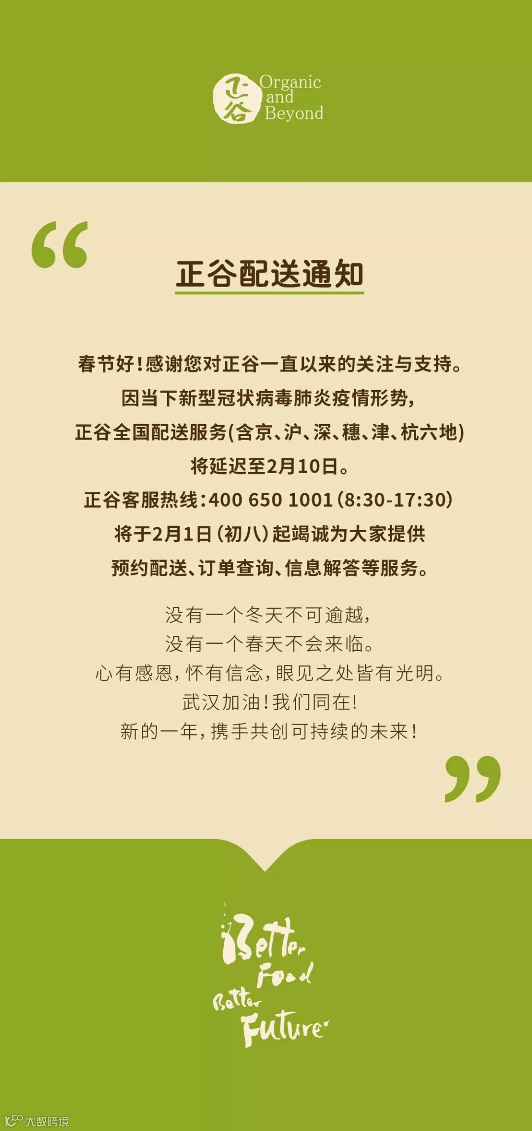 配送服务通知|Better Food , Better Future!