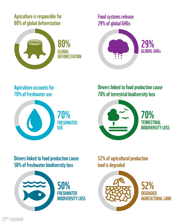 根据WWF发布的《地球生命力报告2020》,1970年到2016年期间,哺乳类、鸟类、两栖类、爬行类和鱼类种群规模平均下降了68%,南北美热带子区域的地球生命力指数下降94%。植物多样性下降尤其严重,有记载的植物灭绝数量是哺乳类、鸟类和两栖类灭绝物种数量之和的两倍[4],一份灭绝风险评估将阿拉比卡咖啡豆列为濒危,因受气候变化影响,预计阿拉比卡咖啡自然种群规模在2088年会缩减一半[5]。