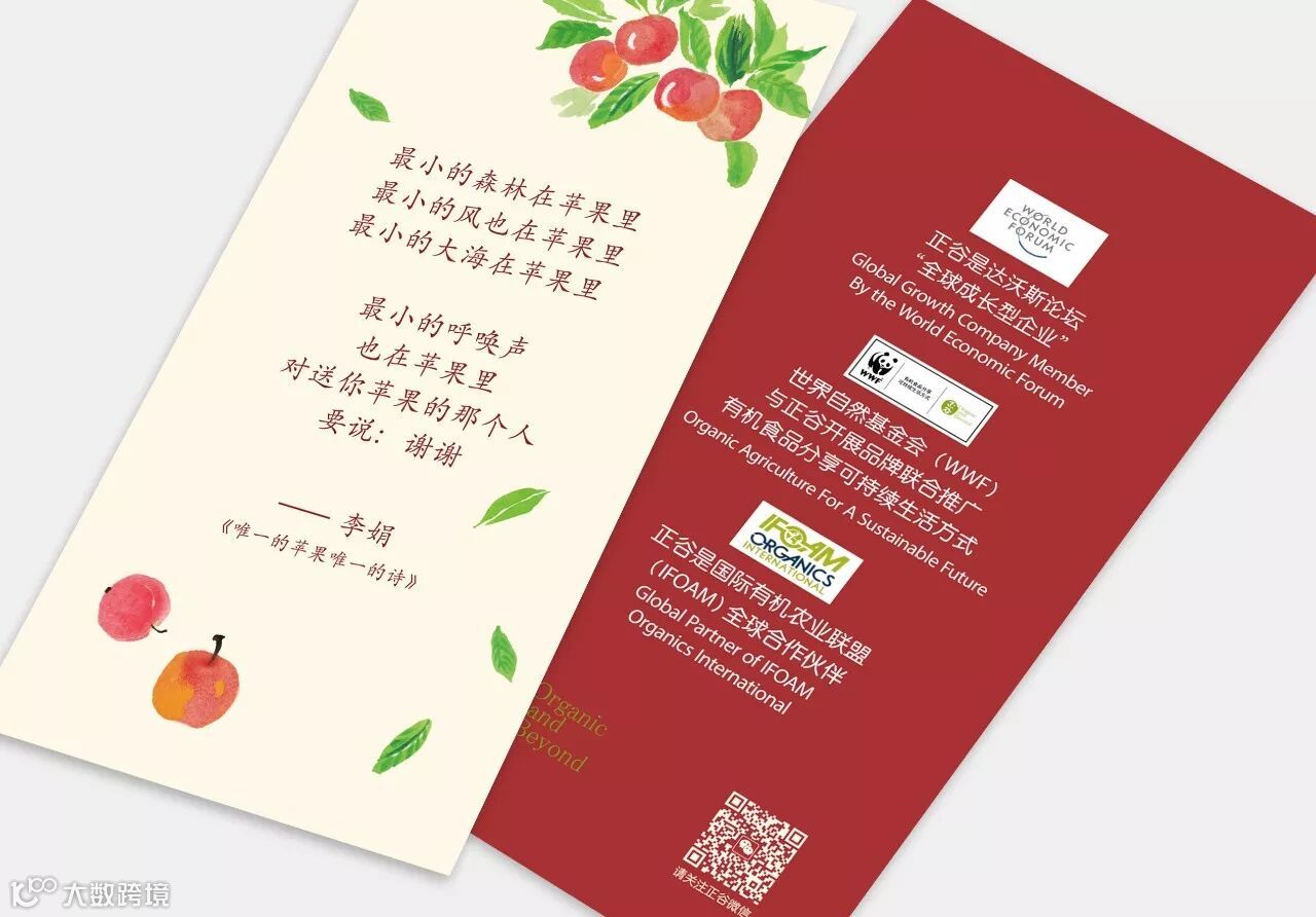 A:1颗苹果代表我的1颗心——含正谷有机苹果一颗,附圣诞贺卡一张。
