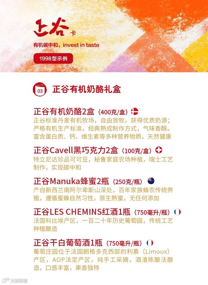 如此美味体验,尽在正谷卡-【正谷Ouroland有机奶酪礼盒】。以美食为礼,是节日里妥帖又用心的情谊联系的方式。2023新春,以自然美味表达美好情感,为家人、朋友、商业伙伴送上诚挚祝福,不妨以这份正谷卡-【正谷Ouroland有机奶酪礼盒】开启新年新气象。