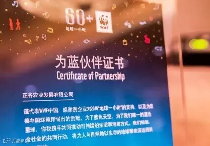 在2016年的WWF“地球一小时”活动中,正谷为“食”的代表,作为“为蓝生活”官方平台合作伙伴,与WWF一起推进可持续消费论坛。