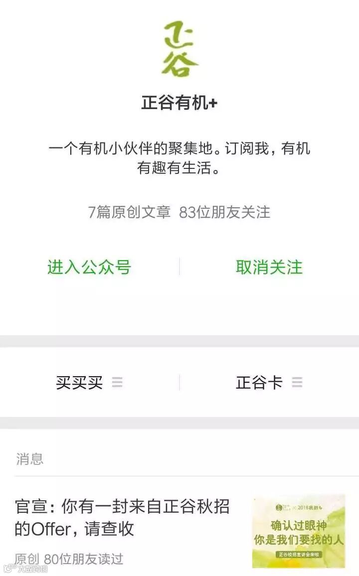 如果你的手速够快,投递简历的前10位并关注订阅号“正谷有机+”的童鞋就等着hr小姐姐来给你送上一份神秘礼物啦~