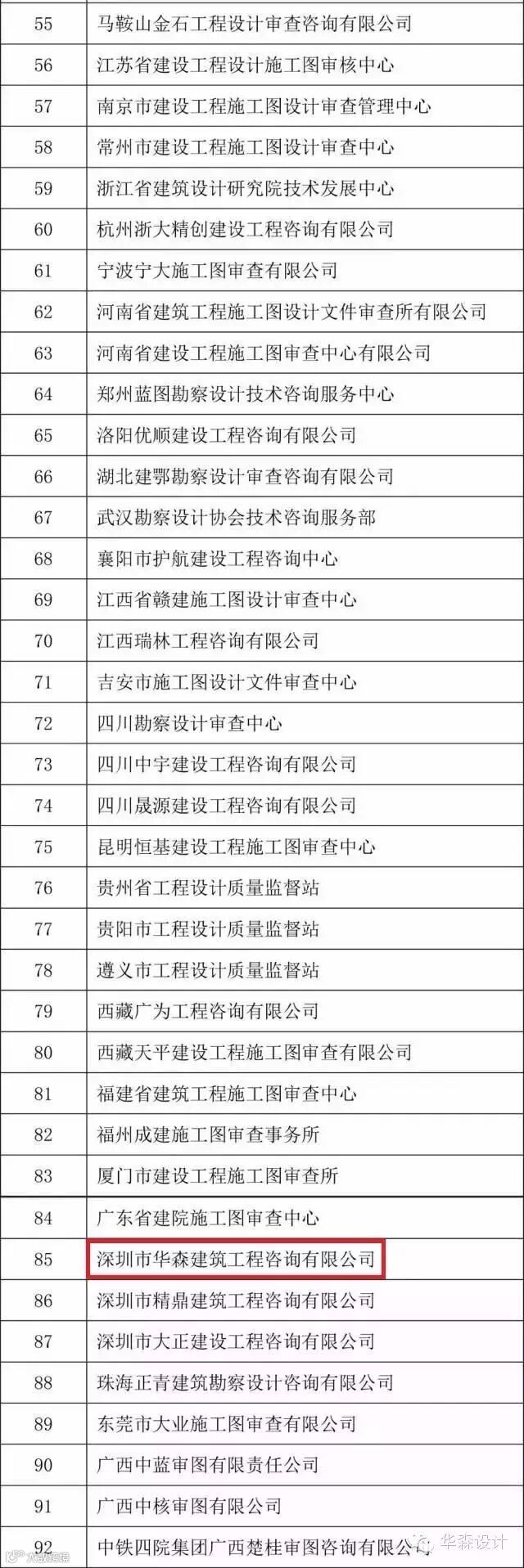 4月20日,中国勘察设计协会发布通知,正式公布了关于公布全国施工图审查工作先进单位和先进个人评选结果,深圳市华森建筑工程咨询有限公司获评施工图审查工作先进单位。