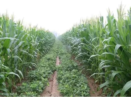 比如花生与玉米间作生长。