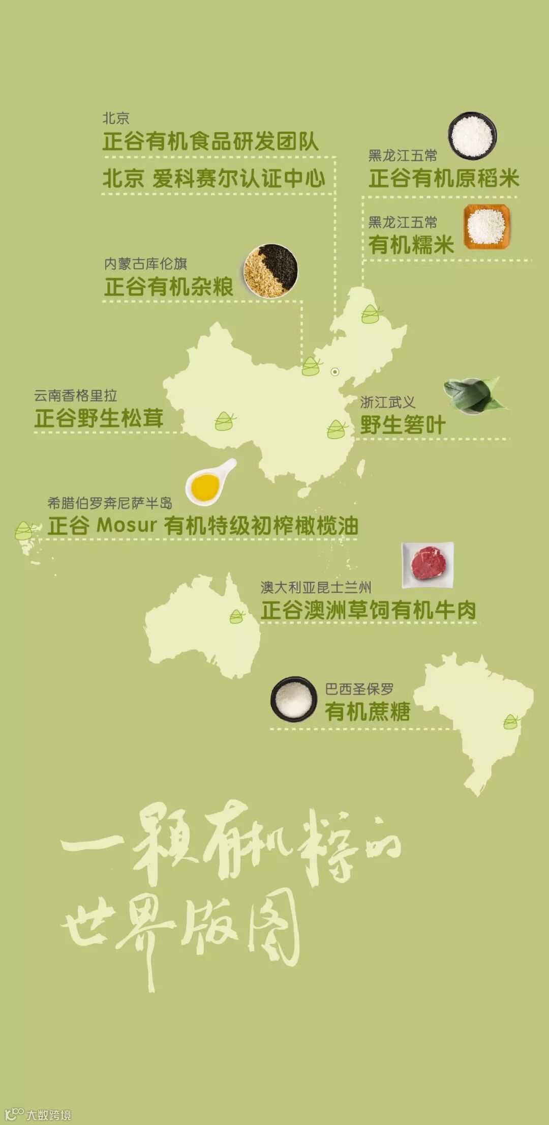 每一只粽子所用到的食材,都是正谷团队甄选环球范围优势产地,进行有机实践所获得:澳洲昆士兰有机牛肉、黑龙江五常有机原稻米、内蒙古库伦旗有机杂粮……