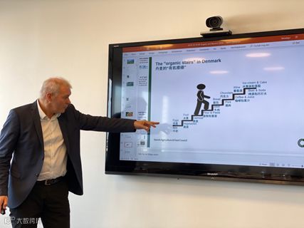 10月10日,张向东一行拜访了丹麦哥本哈根总部的丹麦农业与食品委员会。丹麦农业食品委员会是代表有机及传统农户及食品企业的政策及贸易组织。丹麦农委有机食品与耕作经理Ejvind Pedersen做了“丹麦有机市场趋势“的报告,对丹麦有机农业政策,市场消费、有机种植及生产、有机乳制品概况等进行了介绍。