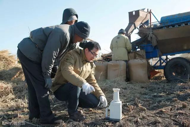 每天,他和同事们大概三点起床,开车半小时-四十分钟到达农户家中,简单吃一点东西,就和农户一起出发到地里,一直劳作到晚上5、6点。回农户家里后,还要把当天打场采集的样本用精米机和水分仪测量,检查出米率和含水量等指标。测一个样本是15分钟左右,需要测7遍左右。晚上回到宾馆,已经是9点左右,“基本上就是倒头就睡,”石宇光说。