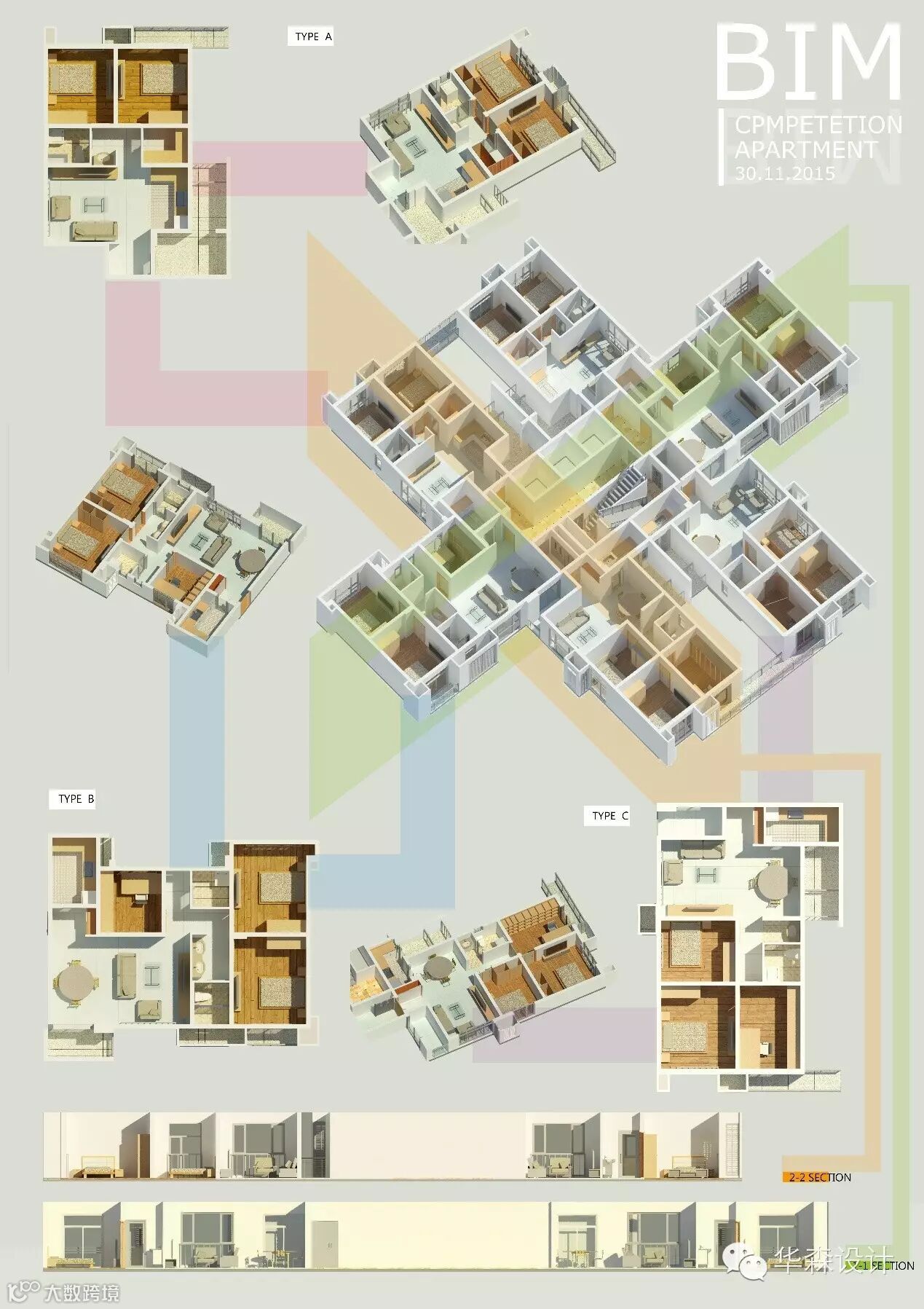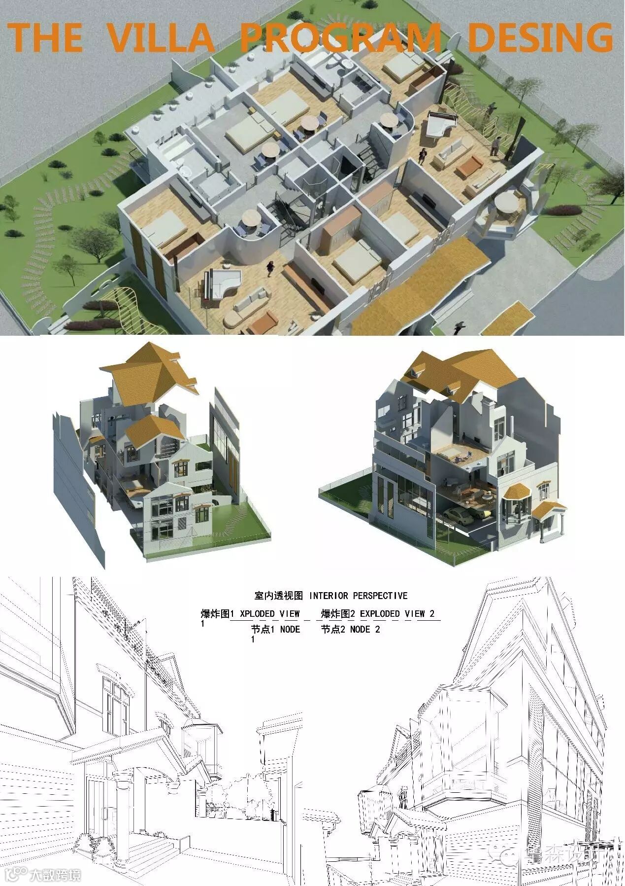 此次竞赛以基本的建筑单元为题,鼓励设计师发挥创意,灵活使用软件技巧,用时尚的建筑语言表达出建筑的平立剖面、透视、剖透视以及分解等表现图。设计师任选酒店、别墅、住宅标准层为题,建立其相应的模型,并完成相关的图纸。