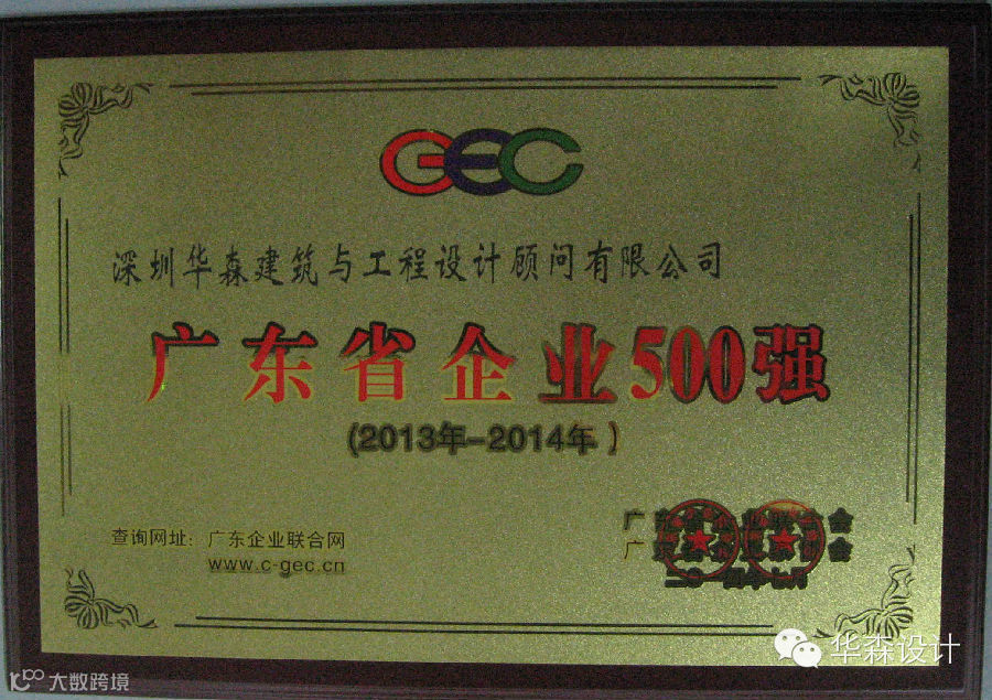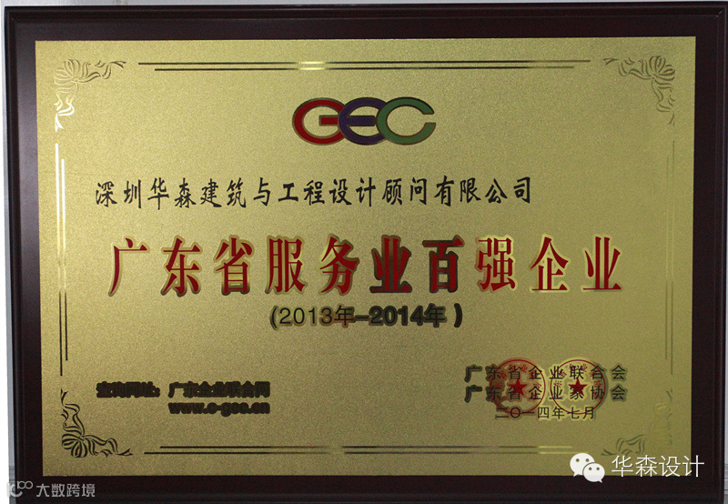 7月25日,2014年广东省企业500强、优秀自主品牌发布会在广州召开。深圳华森建筑与工程设计顾问有限公司入选2014年广东省企业500强、广东服务业100强。