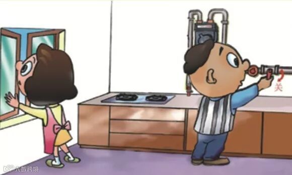❷ 打开门窗,让泄漏的气体散发到室外;