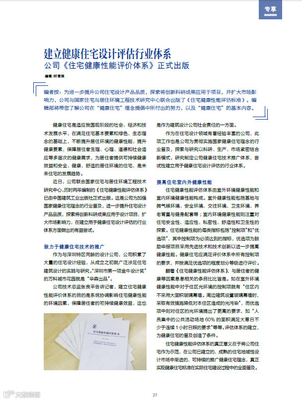 这是华森为加强国家健康住宅理念的行业普及,进一步提升住宅设计产品品质,探索将创新科研成果应用于设计项目,扩大市场影响力,在建立用于健康住宅设计评估的行业体方面做出的有益尝试。