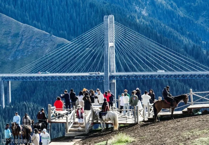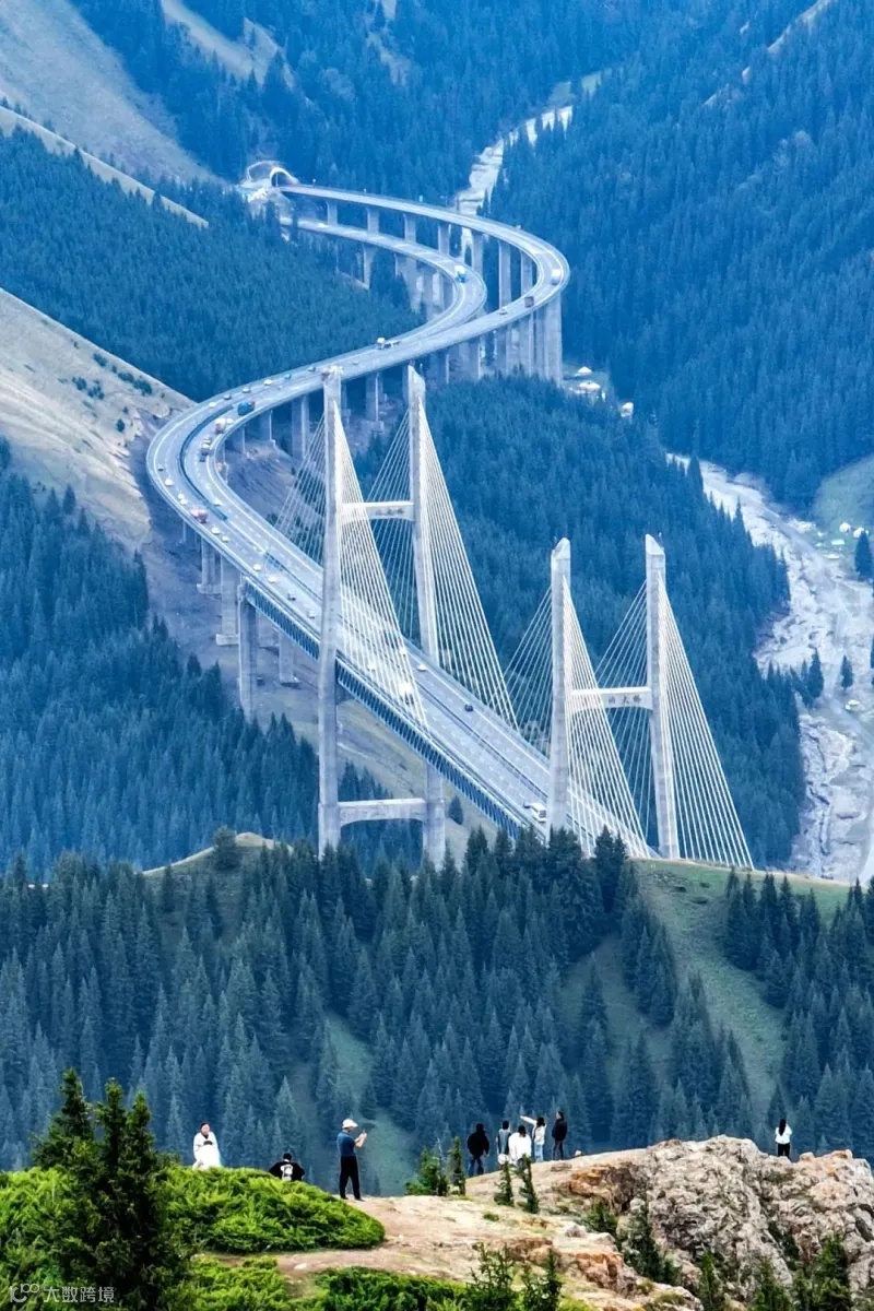 千年来,人们多为果子沟的自然风光所折服。而今,吸引无数游人奔赴而来、赞叹不已的还有凌空于天山之上的果子沟大桥。
