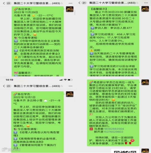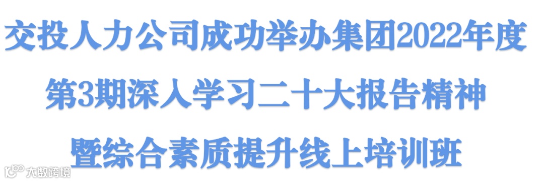 为全面贯彻落实自治区党委、自治区国资委关于组织全区国资国企系统认真学习领会党的二十大报告的指示精神,切实增强承担新时代新征程使命任务的政治自觉、思想自觉和行动自觉;在深刻理解把握党的二十大关于国资国企新的重大部署上下大功夫,坚定扛起党和人民赋予的光荣职责使命,深入推进新时代新疆国资国企高质量发展。在全区疫情防控形势持续转好的形势下,交投人力公司积极发挥“云课堂”作用,11月29日至12月1日,开展为期三天的2022年度深入学习贯彻党的二十大报告精神暨综合素质提升线上培训班,得到了全系统的高度重视和积极参与。