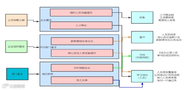 不同的组织它定位是不一样的。比如说我们的人力资源部门。公司对于人力资源的要求是你要提高整个组织的效能。提高人才建设这两个要求,公司其它组织需求人力资源部门激励政策优化把钱分好,组织成员的能力提升。