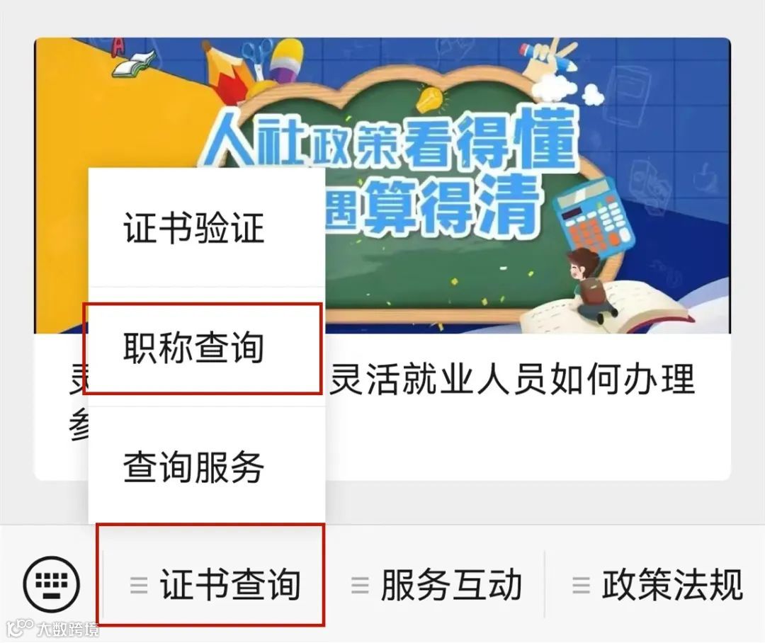 例如,在人力资源社会保障部微信公众号,可通过访问菜单栏“证书查询”—“职称查询”进入职称查询平台