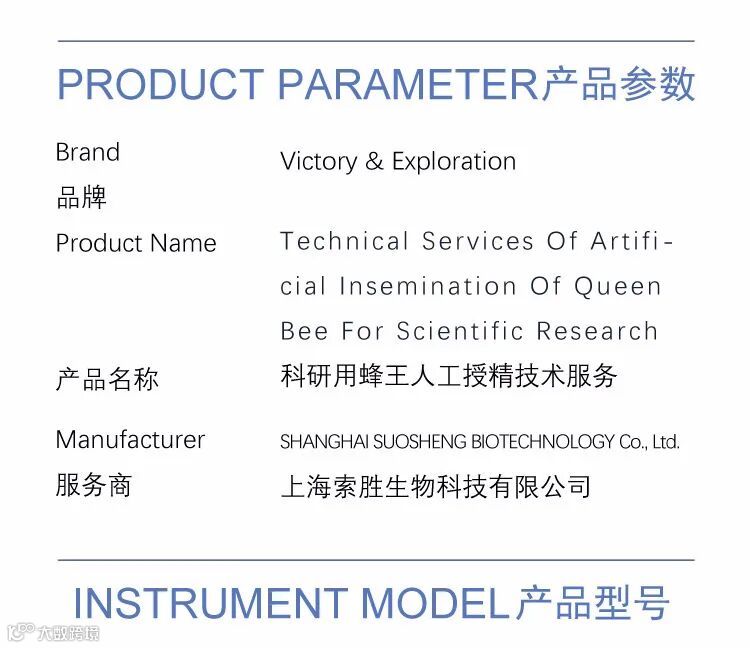 Now,VE(Shanghai Suosheng Biotechnology Co., Ltd.) was launched the technical services such as Artificial Insemination Of Queen Bee etc for research institutions,laboratories, scholars and other similar customers.