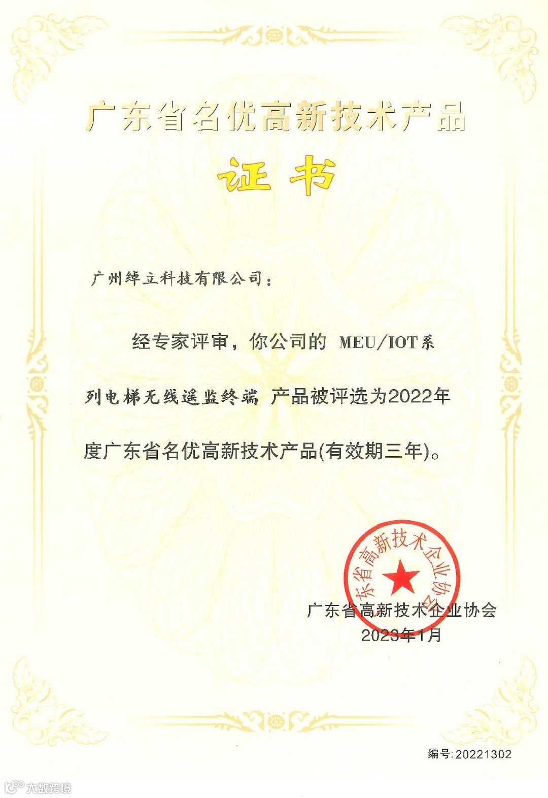 我司的MEU/IOT系列电梯无线遥监终端产品,凭借科技创新能力突出、技术先进质量可靠、对产业发展的高价值影响等综合优势,成功获评为“2022年广东省名优高新技术产品”。