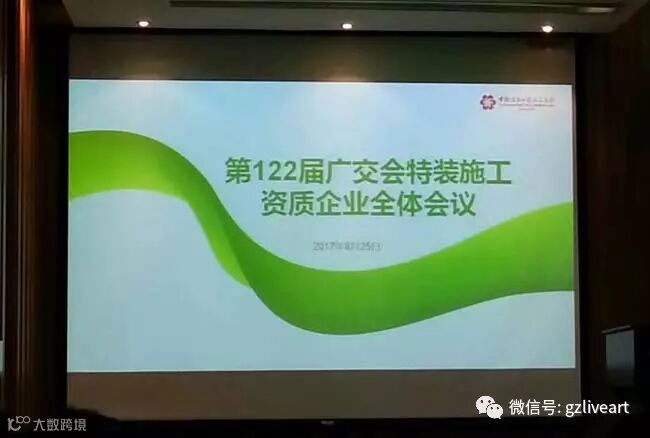 2017年8月25日,中国对外贸易中心(集团)在广交会展馆B区召开了会议,本次大会以“回顾第121届,展望第122届广交会工作”主题,聚集了往届参与的广交会展览施工企业,阐述以发展绿色、环保、安全、圆满的广交会展览为主要工作要点。