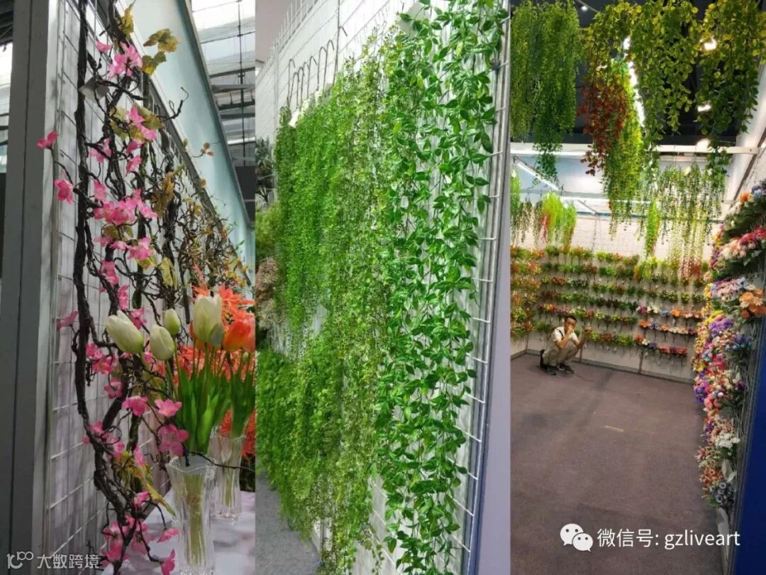 (仿真植物展区的展品是各种仿真花艺,需要插放,看,加装上金属网格,是不是整体精致美观多了~↑↑↑)