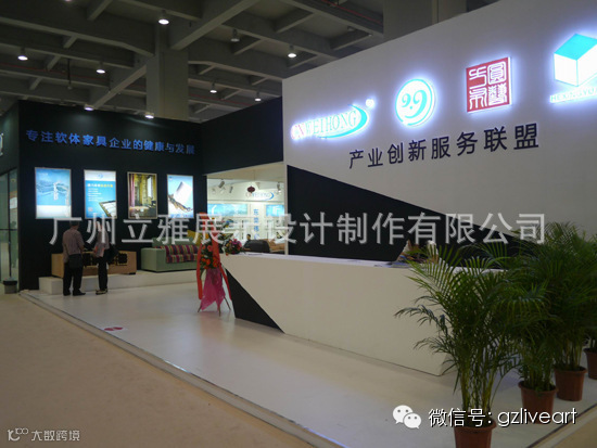 在我们这里:有时尚简约、清新高雅、绿色环保的展台。