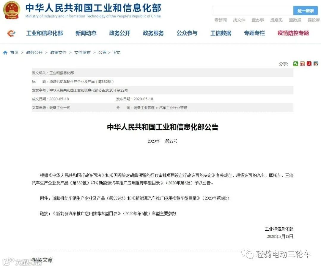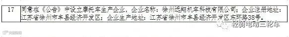 2020年5月18日中华人民共和国工业和信息化部发布的道路机动车辆生产企业及产品(第332批)中徐州远翔机车科技有限公司赫然在列。