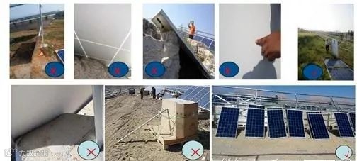 2、组件安装过程中,应尽量避免安装工人在组件上直接落脚进行操作,踩踏、坐卧、跪压、敲打、挤压、撞击组件,导致内部电池片局部受力可能会造成组件隐裂。