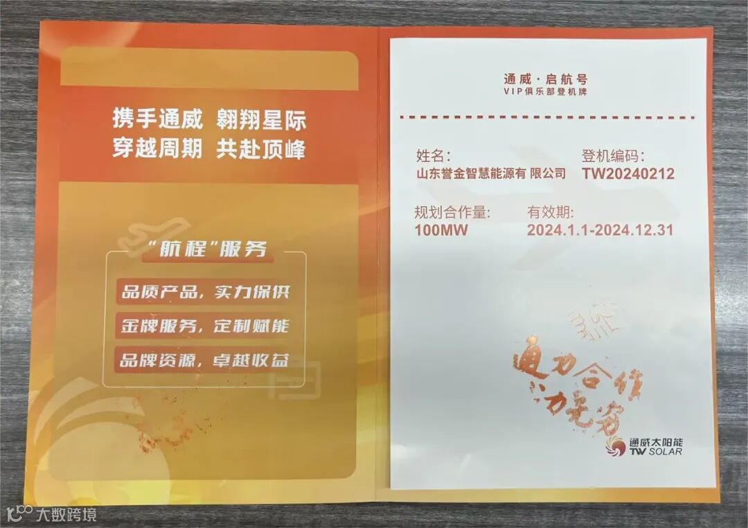 通威太阳能·启航号合作证书